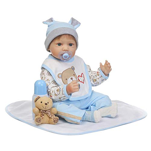 Ce produit dérivé tiré de l’univers du dessin animé Les aventures de petit ours brun a pour nom officiel : LANDUM 22 Pouces Silicium Nouveau-Né Réaliste Bébé Poupée Couverture Tablier de Bande Dessinée Vêtements Bleu Pantalon Chapeau Mini Ours Brun Petite Enfance Enfants Jouets.