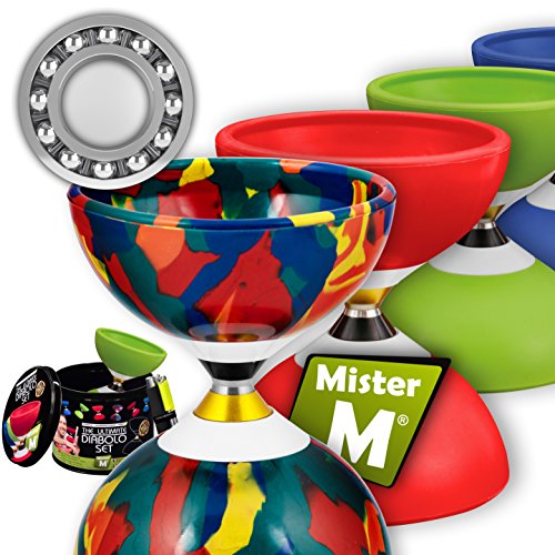 Le parfait kit de diabolo contient tout le nécessaire pour démarrer et apprendre rapidement la maîtrise de l’art traditionnel du Diabolo Chinois. ——- Il a le poids parfait pour apprendre et réaliser des figures. Il est fait de caoutchouc souple et ne risque pas de tomber si il tombe. ——- Les produits de jongle Mister M sont tous testés personnellement avant d’être commercialisés et garantit 100% de satisfaction client. ——-Mister M est une très petite entreprise c’est pourquoi la satisfaction client est mon engagement personnel. ——- Consultez nos autres produits et comparez les avis !Diabolo de haute qualité, largeur 10.5 cm, poids 220 grammes.