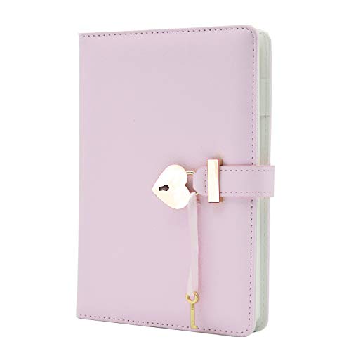 Lirener Secret Journal avec Coeur Cadenas et Clé, A5 Verrouillable Journal Cahier en Cuir PU Organisateur de carnet de Voyage Cahier de Filles avec Cadenas Coeur, Journal Intime Enfant, 145x210mm