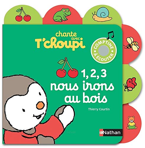 Le titre de ce livre tiré de l’univers du dessin animé Tchoupi est : 1, 2, 3, nous irons au bois – Dès 2 ans.