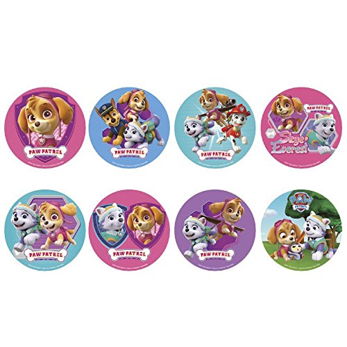 Lot de 16 mini disques en sucre de 3,4 cm de diamètre sur le thème de l’héroïne de Pat’Patrouille : Skye. 8 modèles différents. Idéal pour décorer individuellement vos cupcakes lors d’un goûter d’anniversaire….