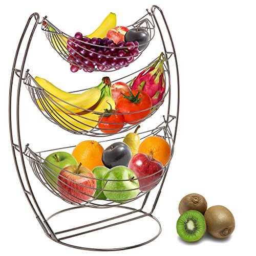 artfully display your Fresh Produce in this modern 3 Level triple Hammock design grille.; Metal construction for durability. Ideal Kitchen Storage solution or an eye-catching centerpiece for your counter top. Also makes a perfect gift for any occasion – Including housewarming, weddings and birthdays.; Provides unparalleled Air Circulation to your fruits and vegetables to keep them Fresher longer.; * * Official mygiftã’ â product includes Multipurpose Towel.; Approximate Dimensions (inches) : 19 W x 20.5 H x 13 D.3 Tier Gunmetal Gray triple Hammock Fruit/vegetable/produit metal basket grille display stand – mygiftã’ â