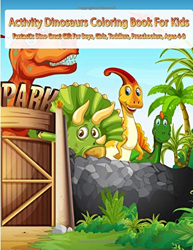 Le titre de ce livre tiré de l’univers du dessin animé Dino Train est : Activity Dinosaurs Coloring Book For Kids: Fantastic Dino Great Gift For Boys, Girls, Toddlers, Preschoolers, Ages 4-8.