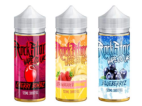 Cerise BombzA saveur douce encore aigre, dominé par la cerise juteuse. Un e-liquide qui est parfait pour les amateurs de mélange de cerise. Livré dans une bouteille 120ml. Fraise BananazThe de mélange parfait pour ceux qui aiment les fruits estivaux – fraise doux et E-liquide banane goûteuse. Livré dans une bouteille 120ml. BlueberryzOur savoureux e-liquide Blueberry a une merveilleuse saveur juteuse, parfait pour les amateurs de fruits avec une dent sucrée. Livré dans une bouteille 120ml.Pack contient 3 x 100 ml E liquide en bouteilles de 120 ml