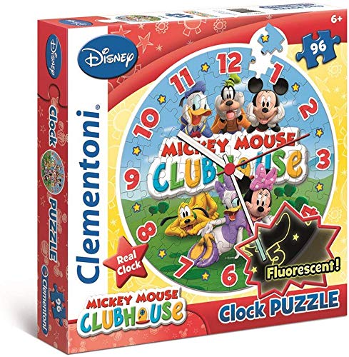 Clementoni Puzzle Mickey Mouse Club Maison 96 pièces, 30 cm, pour les enfants à partir de 6 ans. Le puzzle avec les personnages les plus populaires devient une belle horloge qui peut être accrochée au mur et peut être lue même dans l’obscurité. Dans le paquet, vous trouverez de la colle pour coller les puzzles, un véritable mécanisme de montage et des autocollants fluorescents pour tips. À partir de 6 ans. Dimensions : 30 cm (rond).Clementoni – Horloge puzzle Mickey Mouse Club Maison 96 pièces – 30 cm – Pour les enfants à partir de 6 ans