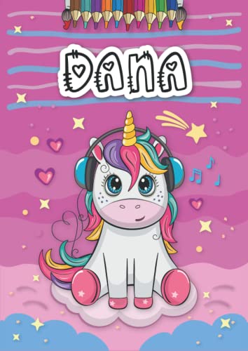 Livre Dana: Livre de coloriage personnalisé pour Dana | Licorne | Cadeau d’anniversaire pour fille … | 4 à 8 ans | 25 motifs de licorne avec le prénom Dana, Grand format A4 (21 x 29.7 cm)