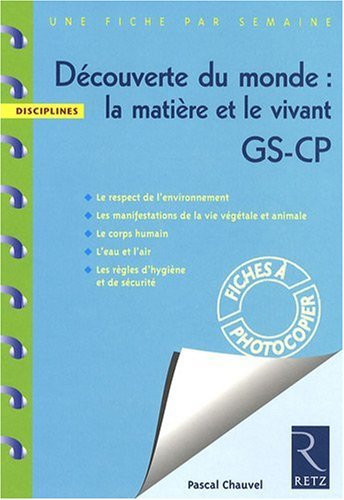 Cet ouvrage-ressource propose aux enseignants de GS et de CP 30 fiches photocopiables autour du monde du vivant et de la matière. Elles ont été conçues comme des fiches de découverte ou de synthèse à partir d’investigations et d’observations réalisées en classe ou dans un environnement proche. Elles peuvent également servir de support pour une évaluation. Conformément aux programmes de 2008, le fichier permet d’aborder : – Le respect de l’environnement : le tri et la durée de vie des déchets, les principaux gestes » éco-citoyens » ; – Les caractéristiques de la vie végétale et animale : les êtres vivants dans leur milieu, la croissance d’une graine de haricot, les différentes parties d’une plante, le besoin de lumière des végétaux, le déplacement des animaux… ; – Le corps humain : les cinq sens, le rôle des différents organes… ; – Des expériences autour de la matière : la transformation de l’eau, la différence entre l’eau et les liquides, l’air… ; – Quelques règles élémentaires d’hygiène et de sécurité. Le guide pédagogique présente l’objectif et le déroulement des séances, ainsi que les corrigés. La mise en œuvre est volontairement synthétique pour laisser à l’enseignant le soin d’adapter chaque fiche à son projet de classe ou aux besoins de ses élèves. Un matériel prêt à l’emploi pour mettre en œuvre efficacement l’enseignement de la matière et du vivant en classe.