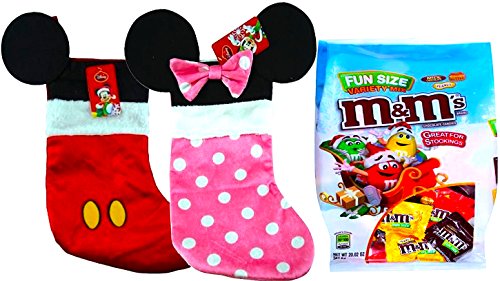 Disney Mickey et Minnie Mouse oreilles 45,7 cm chaussette de Noël en velours avec manchette en peluche comprend fun size variety Mix m & m’s excellent pour le stockage.Comme sur la photo