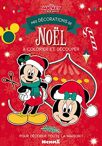 Le titre de ce livre tiré de l’univers du dessin animé Mickey et ses amis est : Disney Mickey et ses amis – Mes décorations de Noël à colorier et découper – Bloc de coloriage et découpage – Dès 4 ans.
