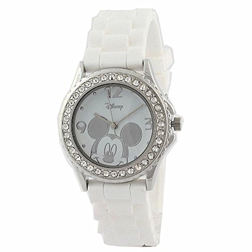 Le titre de ce livre tiré de l’univers du dessin animé Mickey et ses amis est : Disney Mickey Mouse Mk1093 Femme Blanc Bracelet en Caoutchouc décontracté Montre analogique.
