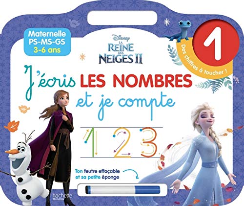 Le titre de ce livre tiré de l’univers du dessin animé Tchoupi est : DISNEY REINE DES NEIGES 2 – Ardoise J’écris les nombres et je compte (3-6 ans).