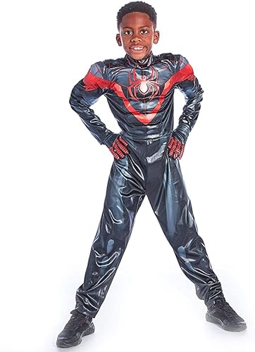 Livre Disney Store Déguisement Miles Morales pour enfants, Spider-Man, 3 pièces, déguisement de super-héros incluant une combinaison musclée rembourrée, des gants et un masque