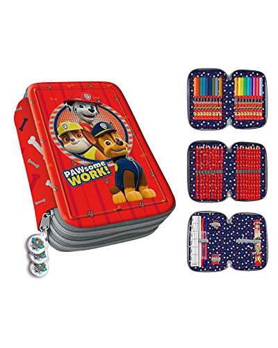 Trousse Pat Patrouille de qualité premium avec 3 compartiments et toutes les indispensables fournitures incluses