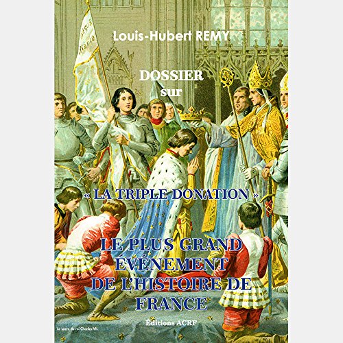 DOSSIER sur « LA TRIPLE DONATION » LE PLUS GRAND ÉVÉNEMENT DE L’HISTOIRE DE FRANCE Président des Amis du Christ Roi de France et passionné de sainte Jehanne d’Arc, Louis-Hubert Remy donne dans cet ouvrage les documents in extenso de la « Triple donation ». Lorsqu’en 2012, pour l’anniversaire du 6° centenaire de la naissance de sainte Jeanne d’Arc, nous écrivîmes l’ouvrage «LA VRAIE MISSION DE SAINTE JEANNE D’ARC : Jésus-Christ Roy de France» ce fut pour beaucoup une découverte qui changea la connaissance du message et de la mission de sainte Jeanne d’Arc. Si aujourd’hui nous revenons sur ce sujet c’est que des « spécialistes » de Jeanne ont essayé de passer sous silence cet événement si important pour la France et le monde, et ont osé écrire : « …elle aurait eu lieu le 21 juin 1429, …le récit aurait été le suivant » ! ! !