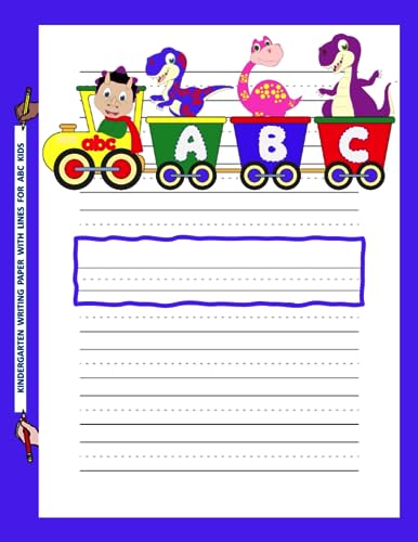 Le titre de ce livre tiré de l’univers du dessin animé Dino Train est : Kindergarten Writing Paper With Lines For ABC Kids: Dinosaurs On Train Composition Notebook For Kindergarteners, PreSchoolers And All Grades.