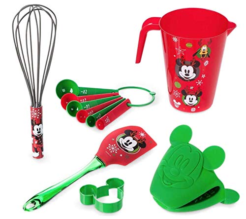 Partagez la magie de Disney avec Mickey, Minnie et Pluto, tout en mélangeant jusqu’à vos propres cookies pour le Père Noël en cette multifonction vacances ensemble de pâtisserie. Laver soigneusement avant la première utilisation. Lavage à la main uniquement pas au micro-ondes ou au lave-vaisselle. Livré dans une boîte pour offrir.L’ensemble comprend un tasse à mesurer, spatule, fouet, 6 cuillères à mesurer sur anneau en silicone, support de pot, et emporte-pièce en forme de Mickey