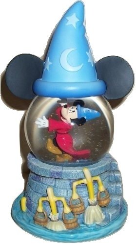 Cette boule de neige hat-shaped dispose Mickey Mouse à l’intérieur avec la danse des balais et des seaux sur la base.disney’s l’apprenti sorcier hat-shaped boule de neige.
