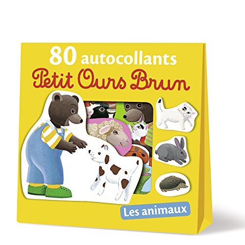 Le titre de ce livre tiré de l’univers du dessin animé Les aventures de petit ours brun est : Les animaux – 80 autocollants Petit Ours Brun.