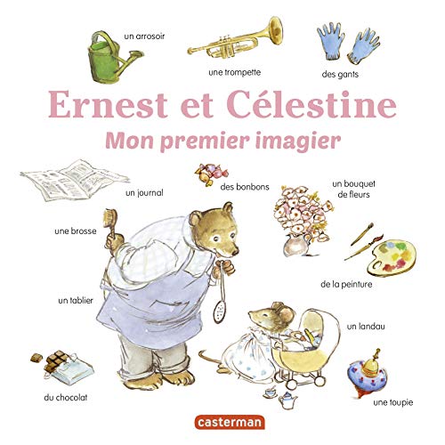 Le titre de ce livre tiré de l’univers du dessin animé Ernest et Célestine est : Les imagiers d’Ernest et Célestine – Mon premier imagier Ernest et Célestine.