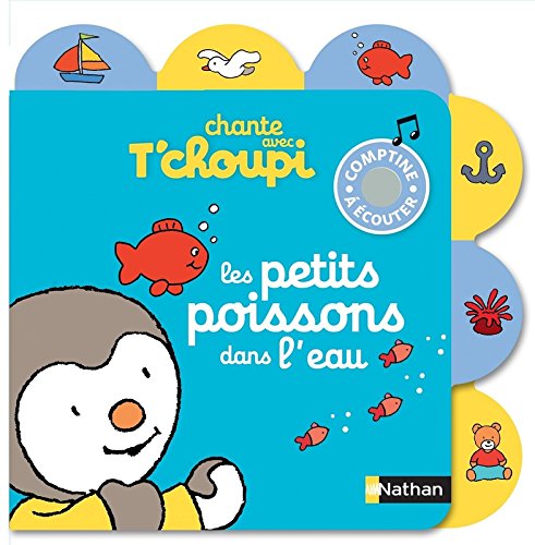 Le titre de ce livre tiré de l’univers du dessin animé Tchoupi est : Les petits poissons dans l’eau – Dès 2 ans.