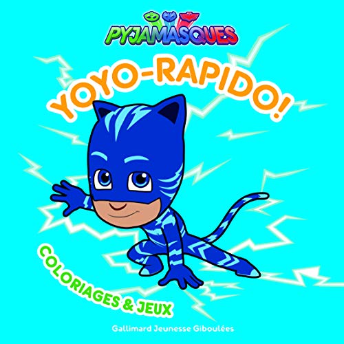 Le titre de ce livre tiré de l’univers du dessin animé Pyjamasques est : Les Pyjamasques : Yoyo-rapido ! : Coloriages et jeux – dès 3 ans.