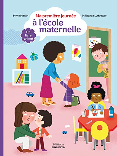 Le titre de ce livre tiré de l’univers du dessin animé Mini-Loup est : Ma première journée à l’école maternelle – Un livre animé.