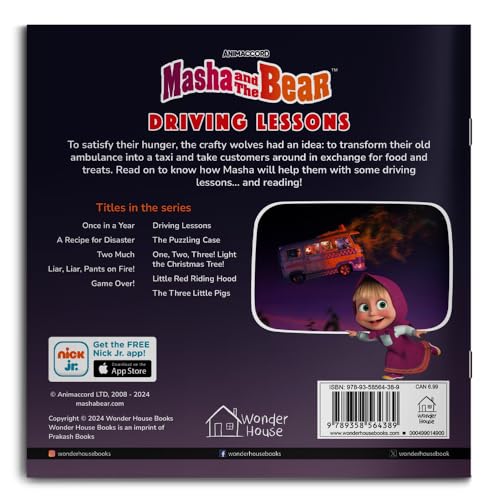 Le titre de ce livre tiré de l’univers du dessin animé Masha et Michka est : Masha and the Bear Driving Lessons.