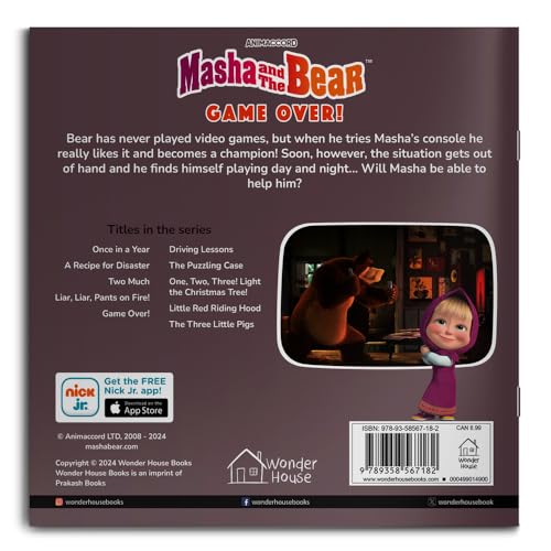 Le titre de ce livre tiré de l’univers du dessin animé Masha et Michka est : Masha and the Bear Game over.
