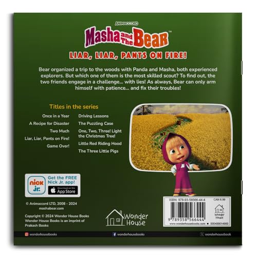 Le titre de ce livre tiré de l’univers du dessin animé Masha et Michka est : Masha and the Bear Liar, Liar, Pants on Fire!.