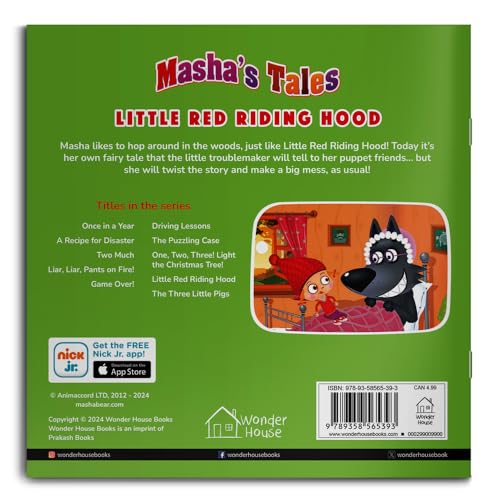 Le titre de ce livre tiré de l’univers du dessin animé Masha et Michka est : Masha Tales Little Red Riding Hood.