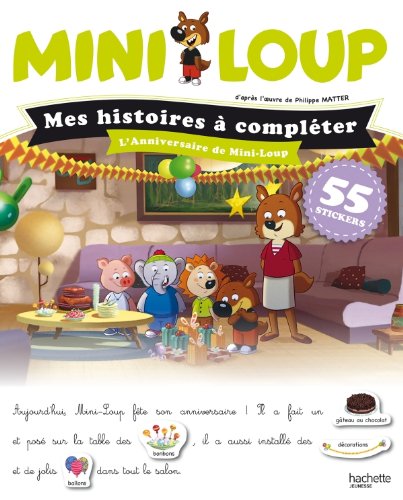 Le titre de ce livre tiré de l’univers du dessin animé Mini-Loup est : Mini-Loup Mes histoires à compléter: L’anniversaire de Mini-Loup (NEDº.