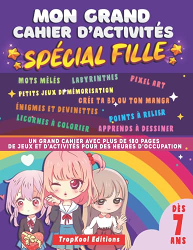 Livre Mon grand cahier d’activités spécial fille: Grand livre de jeux pour fille à partir de 7 ans | Plus de 180 pages pour des heures d’occupation loin des … Énigmes, Labyrinthes,… | Grand format