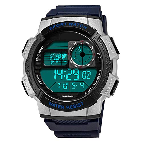 MULTIFONCTIONNEL DIGITAL WATCH pour l’usage quotidien: double fuseau horaire, Chronomètre Compte à rebours, calendrier jour et date, alarme, LED résistant à l’eau, affichage, rétro-éclairage, résistant aux chocs.Les fonctions le rendent parfait pour tous les sports et l’utilisation quotidienne.
