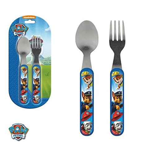 Le titre de ce livre tiré de l’univers du dessin animé Pat Patrouille est : Paw Patrol Set Couverts cuillère et Fourchette de Pat Patrouille.