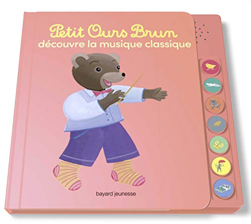 Le titre de ce livre tiré de l’univers du dessin animé Les aventures de petit ours brun est : Petit Ours Brun découvre la musique classique – Livre sonore.