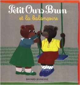 Le titre de ce livre tiré de l’univers du dessin animé Les aventures de petit ours brun est : Petit Ours Brun et la balançoire de Danièle Bour,Pomme d’Api ( 6 janvier 2005 ).