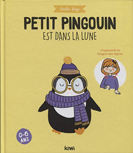 Le titre de ce livre tiré de l’univers du dessin animé Les kiwis est : Petit pingouin est dans la lune: J’apprends la langue des signes. 0 -6 ans.