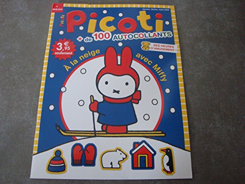 Le titre de ce livre tiré de l’univers du dessin animé Miffy est : PICOTI MAG N°12 !! « à LA NEIGE AVEC MIFFY » + de 100 AUTOCOLLANTS.