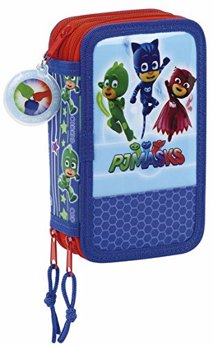 Pj Masks Pyjamasques 411711857 Trousse Triple, Premium, 3 compartiments, feutres, crayons, accessoires école 36 pièces, PolyesterProduit officiel – Pyjamasques avec Yoyo, Bibou et Gluglu
