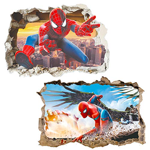 2PCS Sticker mural 3D Spiderman; Taille: (70 * 50cm / 28 * 20inch)