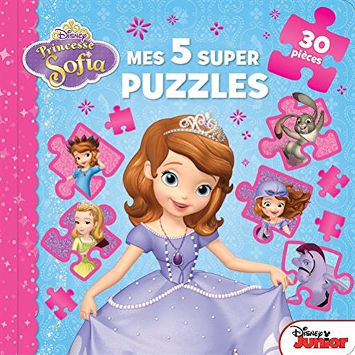 Le titre de ce livre tiré de l’univers du dessin animé Princesse Sofia est : Princesse Sofia : Mes 5 super puzzles (30 pièces).