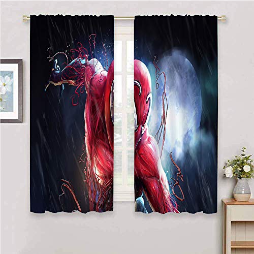 Chaque panneau de rideau Spiderman mesure 80 cm de large (largeur totale 160 cm) et mesure 114,3 cm de long. Les rideaux sont fabriqués en microfibre de polyester ultra douce. Tissu durable qui peut être stocké pendant une longue période sans décoloration au soleil.
