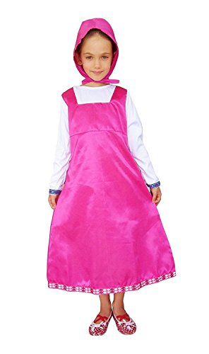 Taille S – 5 – 6 ans – Costume – Mascarade – Carnaval – Halloween – Masha et Michka – Rose – EnfantInclus: robe et mouchoir (chaussures non incluses)