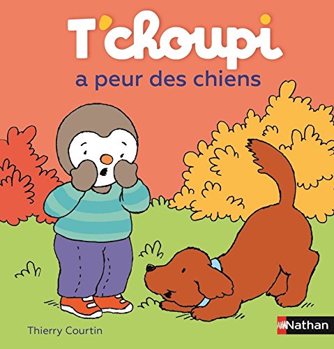 Le titre de ce livre tiré de l’univers du dessin animé Tchoupi est : T’choupi a peur des chiens.