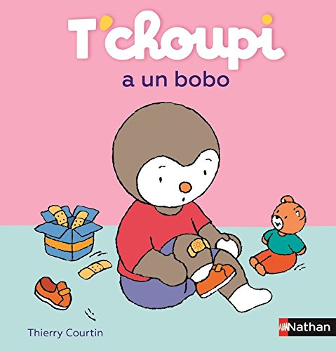 Le titre de ce livre tiré de l’univers du dessin animé Tchoupi est : T’choupi a un bobo (53).