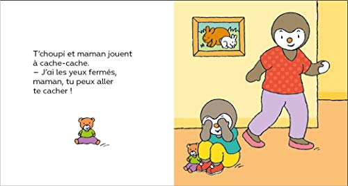 Le titre de ce livre tiré de l’univers du dessin animé Tchoupi est : T’choupi joue à cache-cache – Dès 2 ans (64).