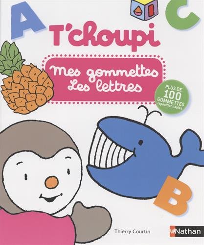 Le titre de ce livre tiré de l’univers du dessin animé Tchoupi est : T’choupi : Mes gommettes – Les Lettres – Dès 3 ans.
