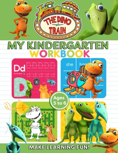 Le titre de ce livre tiré de l’univers du dessin animé Dino Train est : The Dino Train My Kindergarten Workbook: Handwriting Calligraphy Act Character Letter A Colouring Inspirational Dinosaur Same And Different Watercolor … Activities Books Exclusive Illustrations.