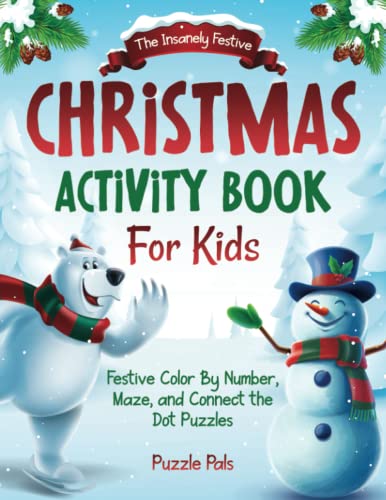 Le titre de ce livre tiré de l’univers du dessin animé Masha et Michka est : The Insanely Festive Activity Book For Kids: Christmas Themed Color By Number, Maze, and Connect The Dot Puzzles.