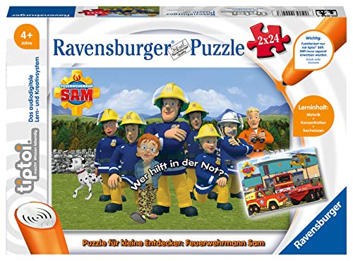 Le titre de ce livre tiré de l’univers du dessin animé Sam le pompier est : tiptoi® Puzzle für kleine Entdecker: Feuerwehrmann Sam.